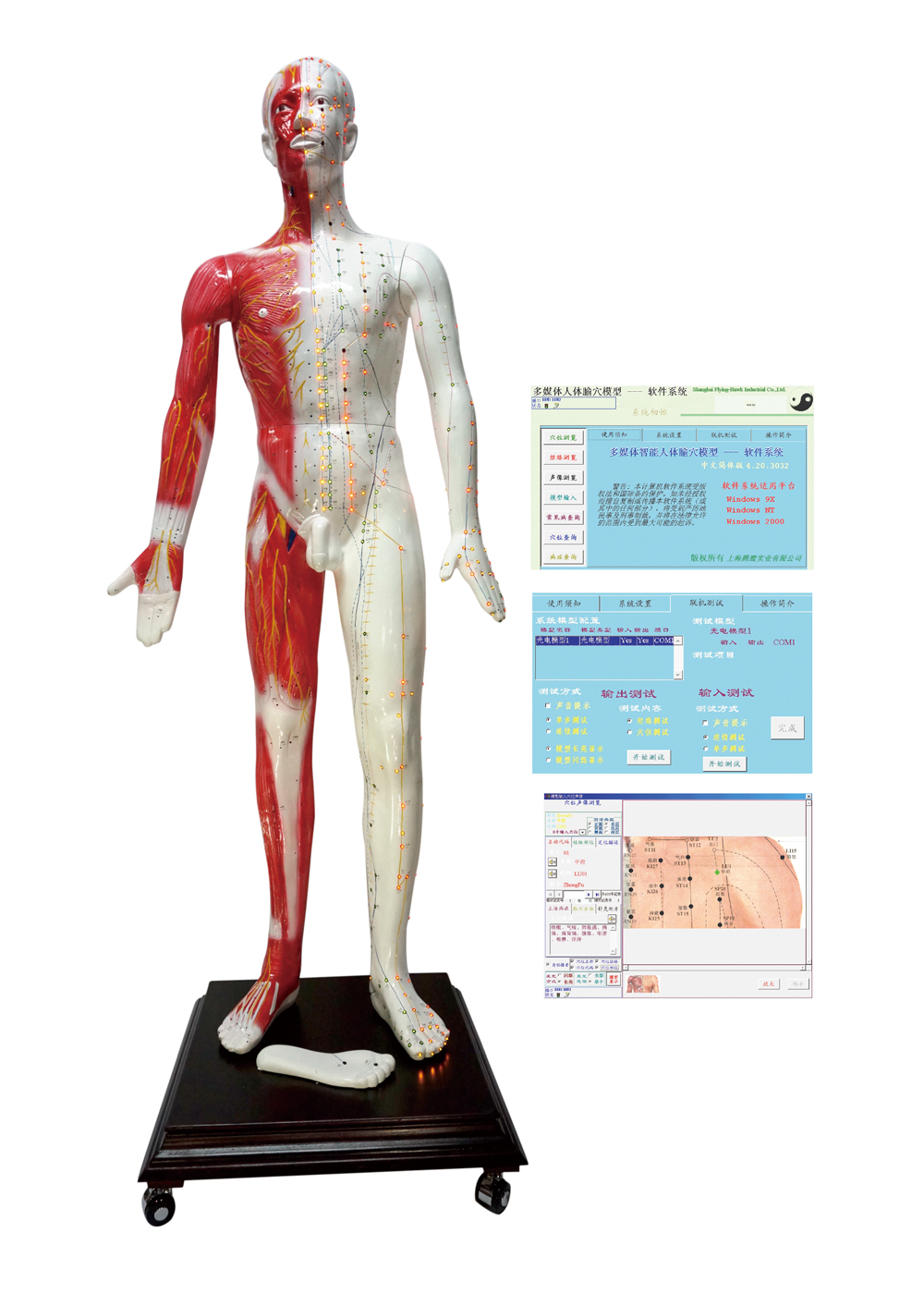 多媒體人體針灸穴位發(fā)光模型... 該系統(tǒng)融計(jì)算機(jī)技術(shù)、電子控制技術(shù)、多媒體技術(shù)、腧穴理論于一體;聲音、屏幕、人體模型同步控制筋絡(luò)腧穴的信息;顯示十二經(jīng)脈循環(huán)流注,經(jīng)脈絡(luò)屬表理對(duì)經(jīng)關(guān)系,特定穴的分布;加之屏幕表層、淺層、深層穴位解剖圖的配合,常見(jiàn)病的辯施治,隨證選穴的查詢(xún)及處理輸出,使學(xué)員對(duì)人體經(jīng)絡(luò)腧穴信息有更全方位的了解,更有利于加深印象與理解掌握;同時(shí),亦可用于臨床與科研參考。